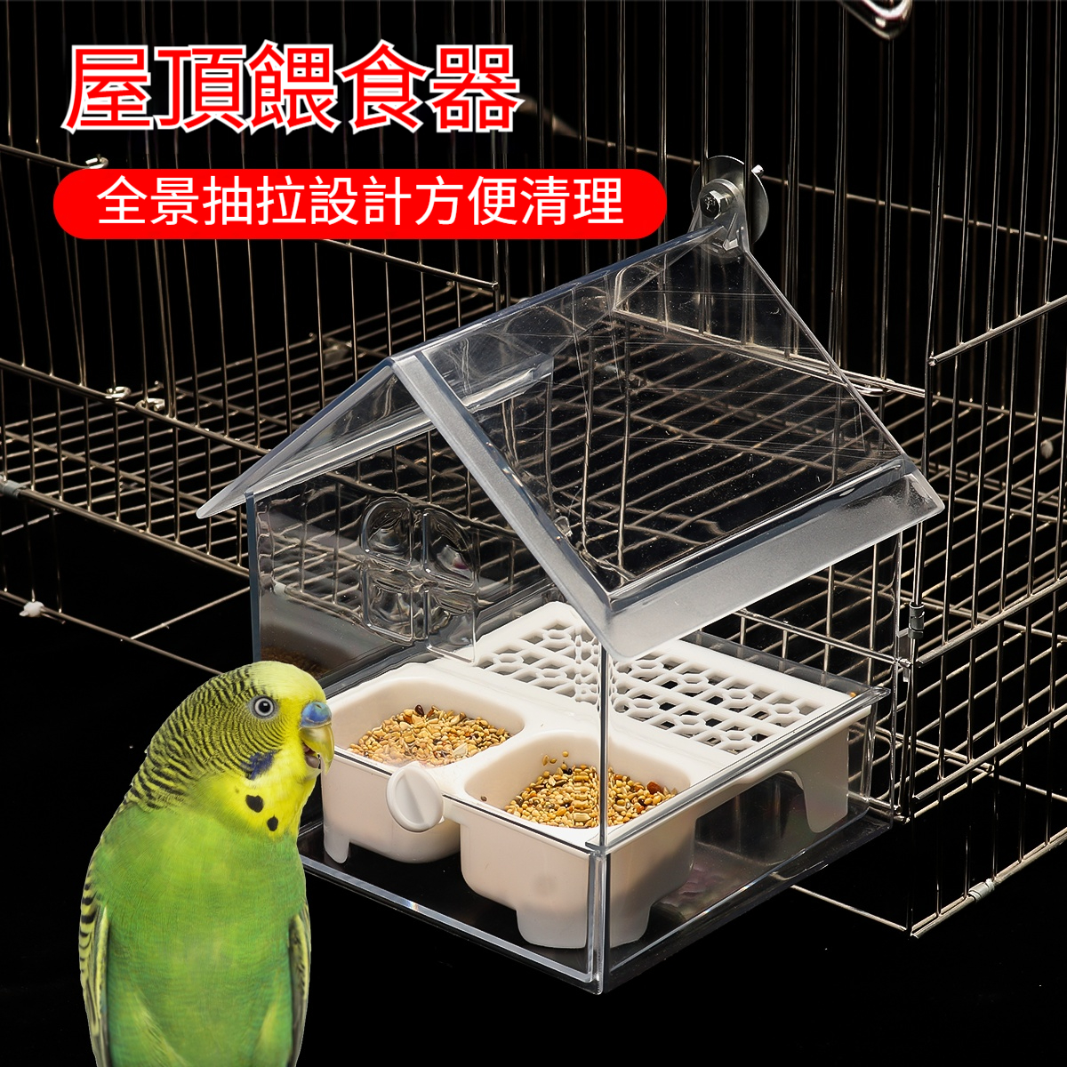 ❤️【免清理鳥糧】虎皮鸚鵡防撒食盒 ✨ 外掛式防濺食槽|適用玄鳳、牡丹、小太陽 防霉防潮、透明監控、牢固耐用、台灣愛鳥推薦