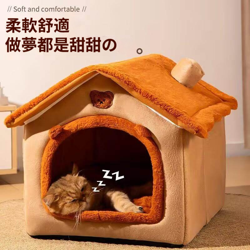 【四季必備】貓咪城堡❤️狗狗安全屋|半封閉式絨毛寵物窩|台灣冬季保暖神器 ✧ 加厚防水底墊 ✧ 可拆洗設計 ✧ 小型中型犬貓通用 ✧ 四季皆宜 ❄️❤️