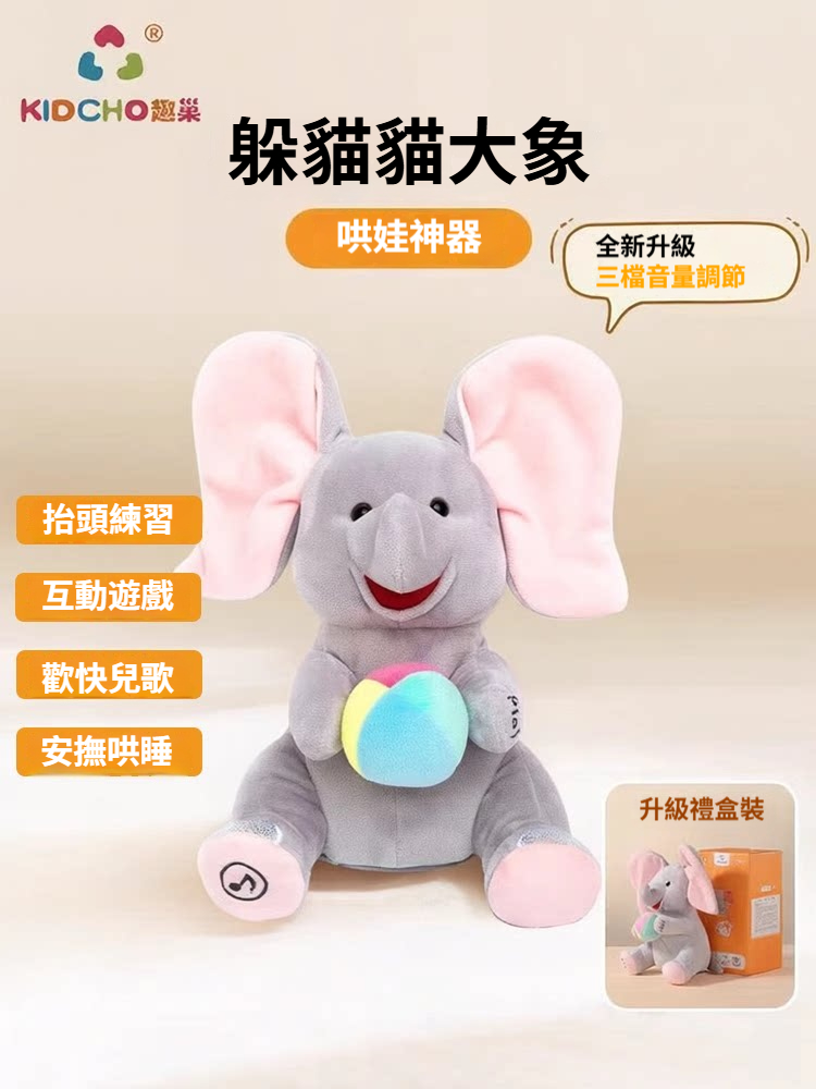 日本趣巢躲猫猫玩具嬰幼兒童寶寶大象玩偶✅練習抬頭✅音樂安撫✅仿真毛絨✅安全認證材質✅不掉毛無異味✅智能逗趣萌寵✅解放寶媽✅精美包裝
