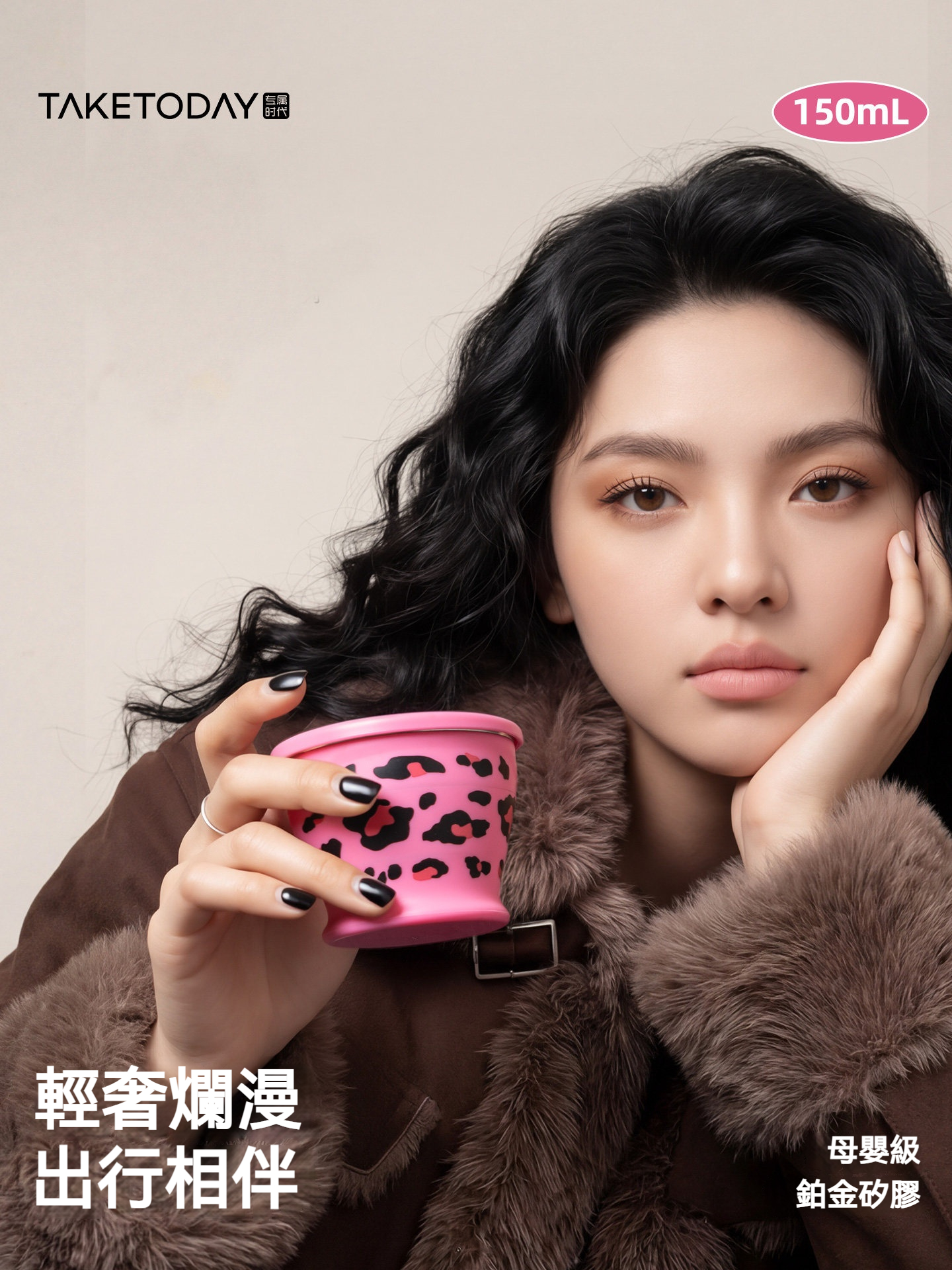 韓系輕奢爆款!TakeToday「豹紋折疊水杯」✨ 高顏值矽膠隨行杯,時尚配件一秒收納,旅行攜帶超有型!