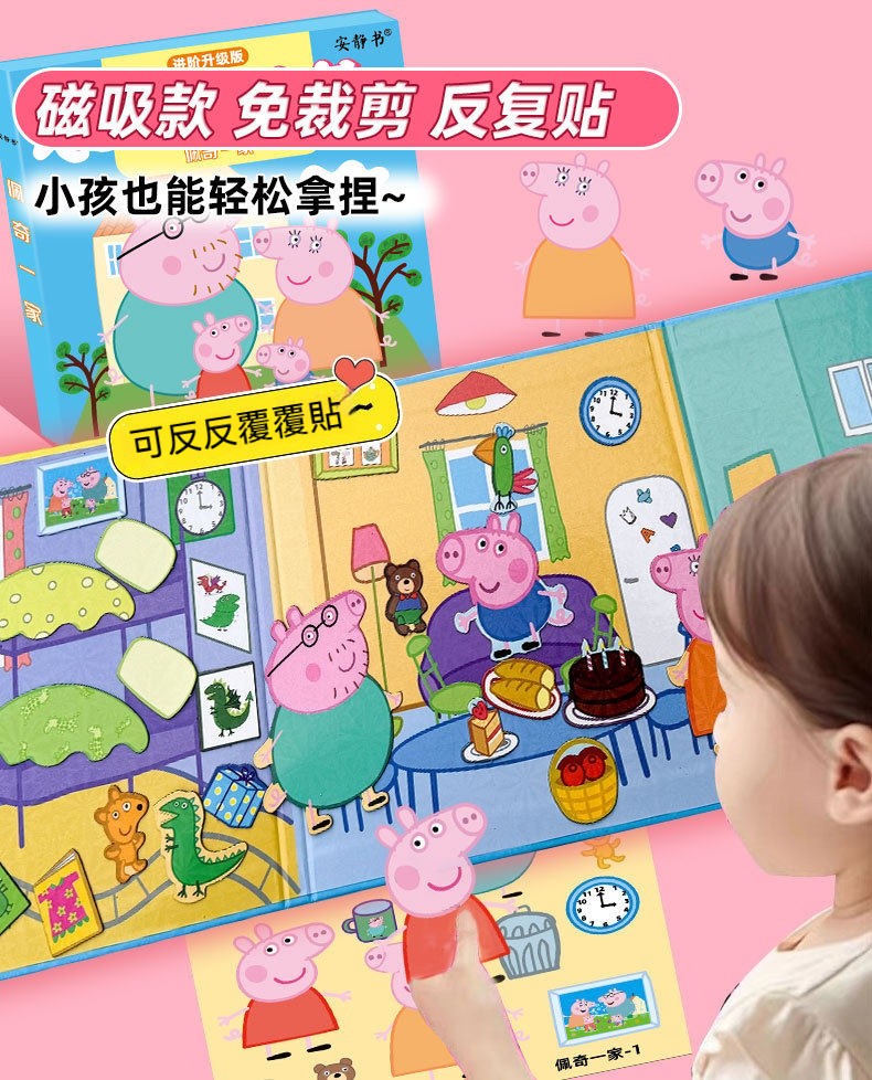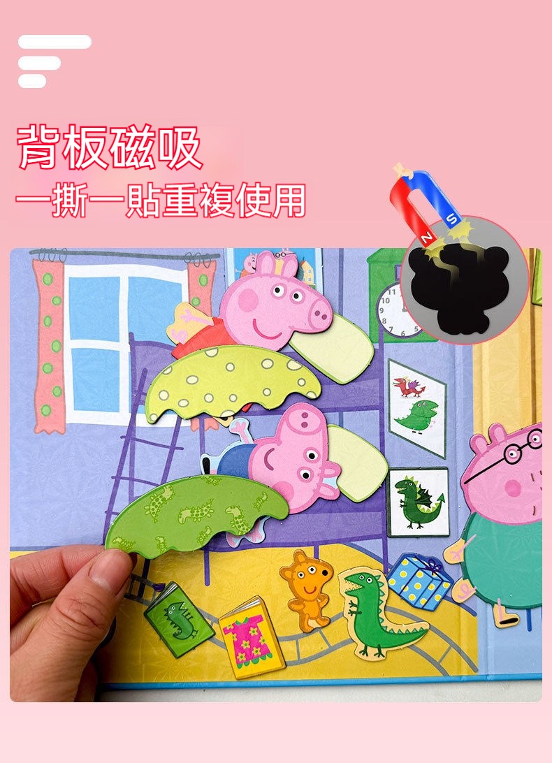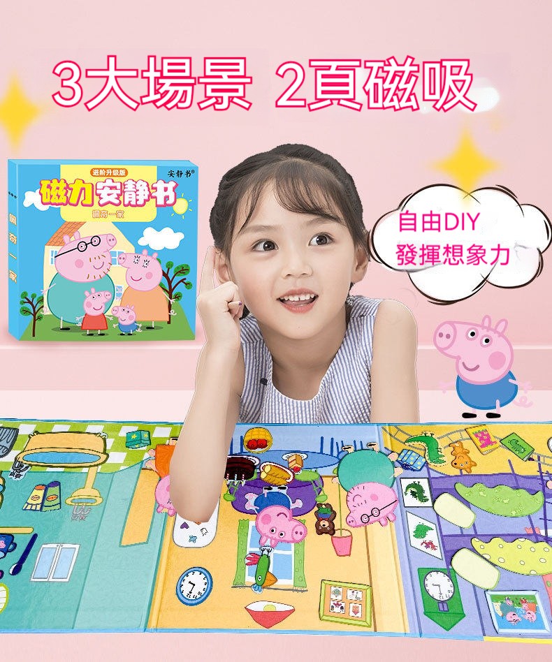 佩佩豬磁力安靜書|3-6歲寶寶必備 ✨ 可重複撕貼的手工磁性貼! 兒童益智玩具首選 ❤️ 一撕一貼訓練小手肌肉,佩佩一家陪寶貝邊玩邊學,出遊安撫神器
